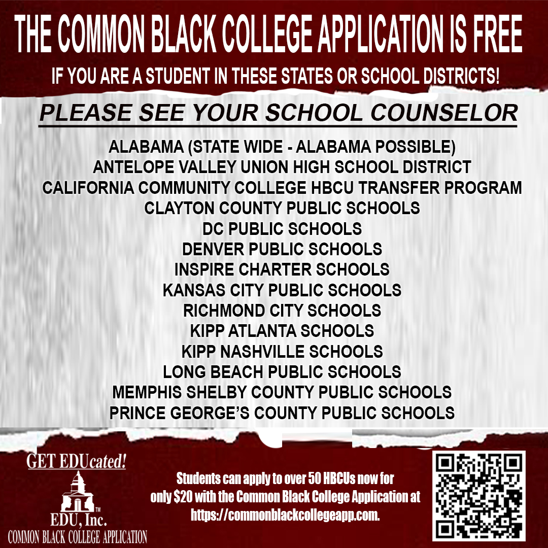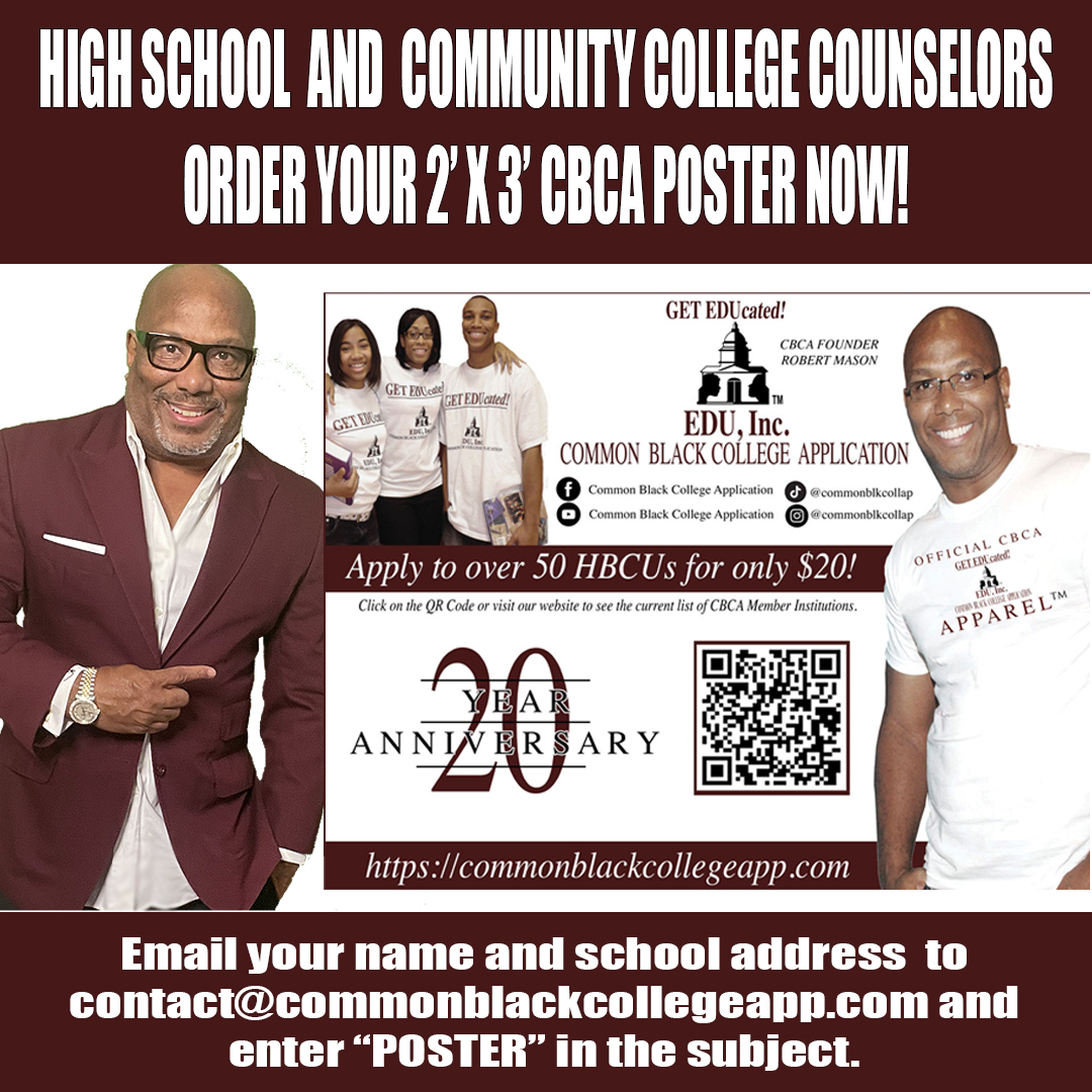 Join the Common Black College Application (CBCA) School Counselor Workshop. To support you, we are hosting a 30-minute CBCA School Counselor Zoom Workshops. We recognize the critical role you play in guiding students through the college admissions process, and our mission is to make that journey easier—for both you and your students These interactive virtual sessions, will walk you through the School Counselor Dashboard, transcript submission process and the best practices for helping students successfully complete their CBCA. You will also have an opportunity to ask questions directly from the CBCA Team.